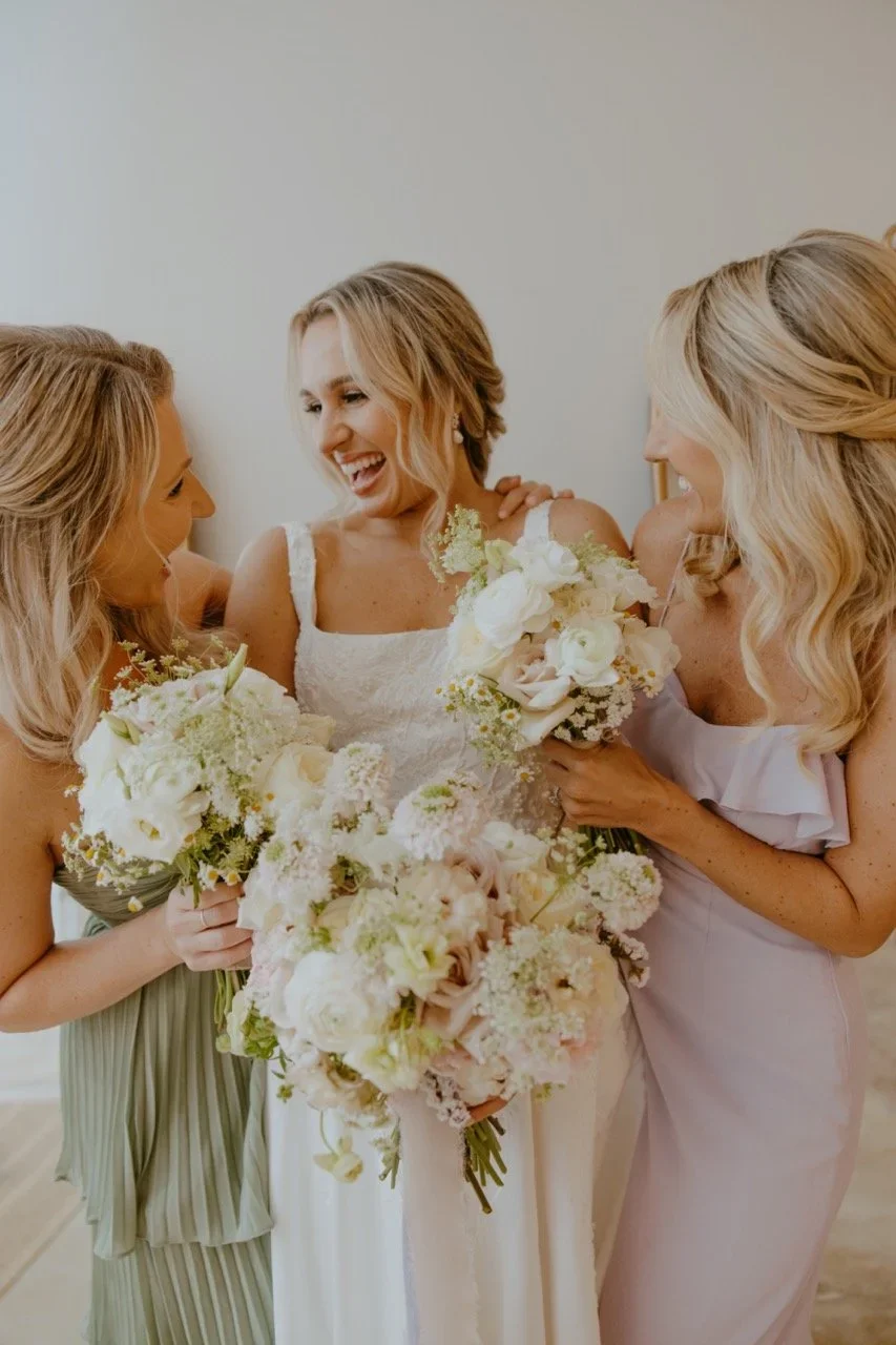 Ask your florist for, “Neutrals, big blooms, movement, & softness”